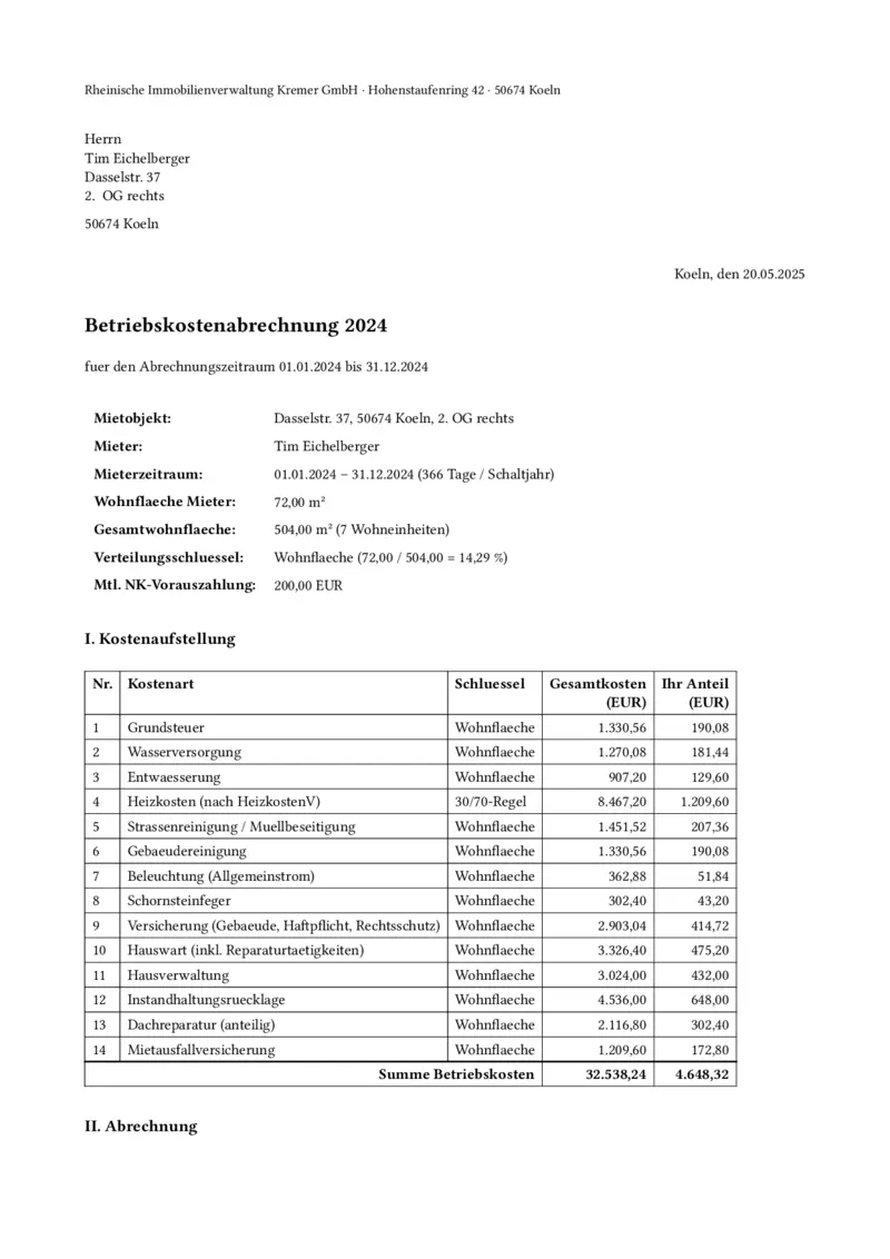 Ersparnis berechnen →Die Grundsteuer darf auf Mieter umgelegt werden — aber nur der tatsächliche Anteil. Häufige Fehler: Es wird der volle Betrag statt des anteiligen umgelegt.