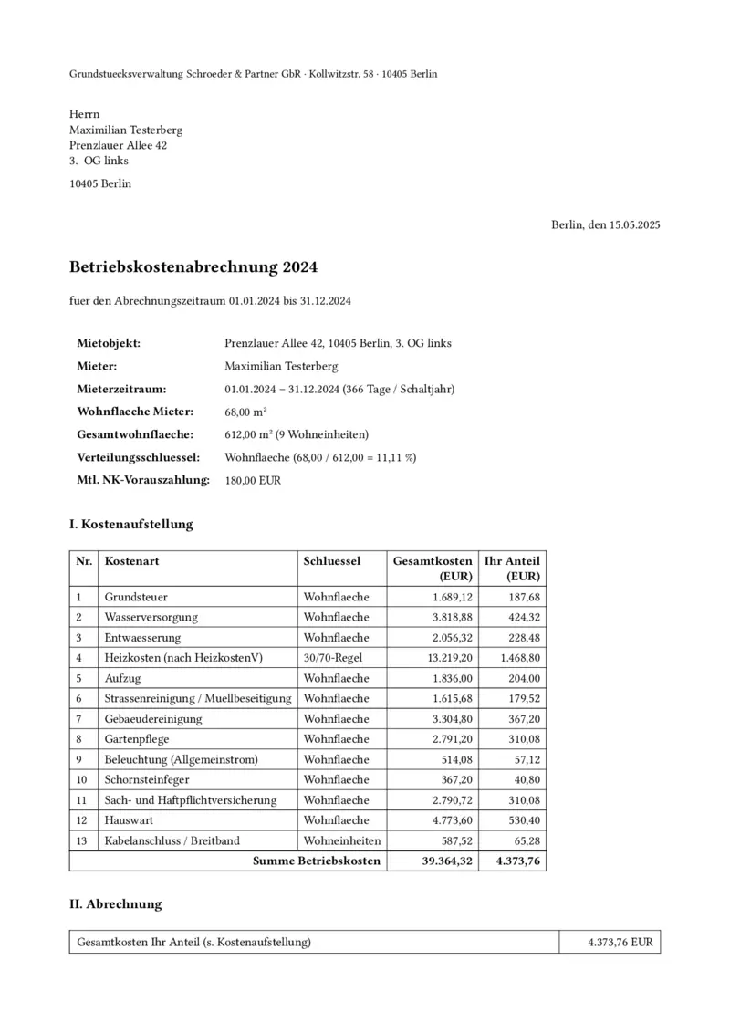 Ersparnis berechnen →Die Grundsteuer darf auf Mieter umgelegt werden — aber nur der tatsächliche Anteil. Häufige Fehler: Es wird der volle Betrag statt des anteiligen umgelegt.